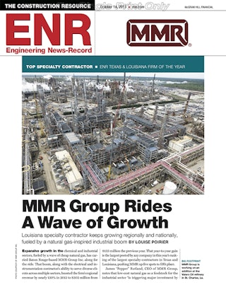 BATON ROUGE, La. MMR Group announced that it has been named Engineering News Record (ENR) of Texas and Louisianas 2013 Specialty Contractor. MMR garnered the position with its remarkable 132% increase in revenue from 2011 to 2012, which is the largest growth of any specialty contractor included on ENRs list.